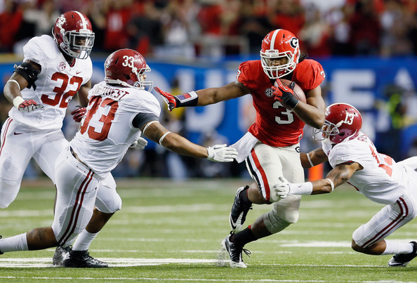 Now I will discuss what Todd Gurley has meant to the UGA football program, and more importantly, the UGA fan. I wasn’t alive during Herschel Walker’s heyday. I wasn’t alive to see him rush for 5,502 yards, and 52 touchdowns. I wasn’t even thought about when he hoisted UGA’s second Heisman trophy in 1982, and I wasn’t alive when he led my beloved bulldawgs to a national title as freshman.Throughout my life I have always been fascinated with athletes that could single handedly take over a game. There have been several basketball players that have been blessed with this skill, fewer baseball players, and even fewer football players. Michael Jordan, Derek Jeter, and Peyton Manning are a few of the professional athletes that I would put into the category of having the capability to completely win a game single handedly. When you think about college football players that can completely take over a game in the sense of which school they came from it is extremely rare for a program to have more than one of these players in a 10-15 year span. Names like Vince Young (Texas), Cam Newton (Auburn), Tim Tebow (Florida), and Reggie Bush (USC) come to mind when thinking about programs that have had a game changer in the last decade. If you look at those names it is easy to see how hard it is to land a talent like that numerous times in a 10-15 year span. In other words, there hasn’t been a running-back comparable to Reggie Bush to enroll at USC since 2005, Florida hasn’t had a QB that could hold Tim Tebow’s jock strap since he left, and Texas fans pray every day for the next Vince Young. Todd Gurley is a once in a decade type of player.